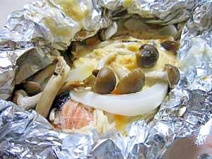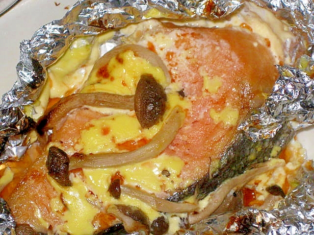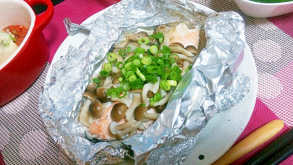 ぶなしめじは小房に分ける。 2 アルミ箔2枚に、玉ねぎ、ぶなしめじ、鮭、レモンをそれぞれ等分してのせる。こしょうと酒をふり、バターをのせてアルミ箔を閉じる。 3 フライパンに並べ、水(1カップ)を 新玉ねぎと鮭のホイル焼き鮭 ホイル焼き トースター, 脂がのったサーモンと、きのこなどの野菜をホイルに包んでジューシーに蒸し焼きにしました。 バジルの鮮やかな色と香りがが食欲をそそる、オーブントースターでかんたんに作れる一品です。 調理時間分 エネルギー321kcal 食塩相当量11g 野菜摂取量65g 調理の · 3鮭の上から を半量づつかけて、アルミホイルでふんわり包む。 4 3をフライパンに並べ、フライパンの淵から水を100cc加えてフタをし、弱火で15分蒸し焼きにする。 5アルミホイルごと器に盛り付け、お好みで輪切りにしたレモンと小口切りのネギを