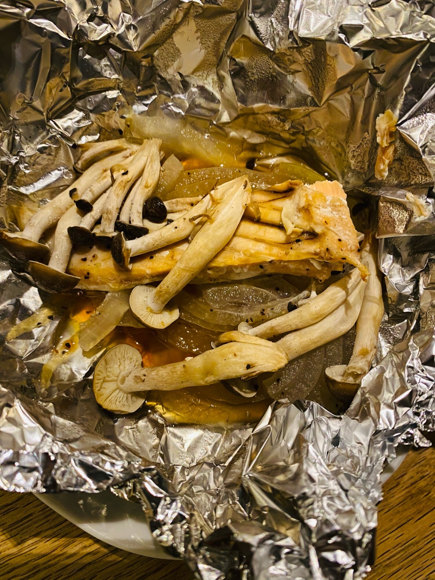 キノコたっぷり鮭のホイル焼き Run To Be Sober