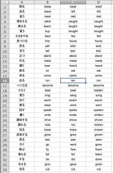 不規則動詞の過去形一覧表 roncompany